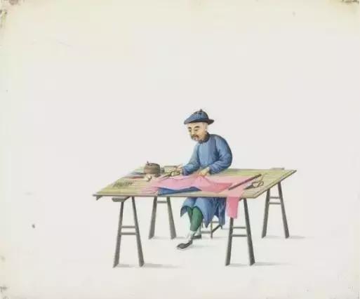 裁剪布料:古代的布料可是非常考究的,什么人穿什么布料都有一定的规定,布料的剪裁也很细致。