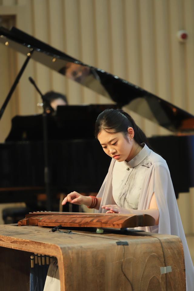 在3日举办的“泠弦幽韵”古琴独奏音乐会上,出生于2002年的洪韵,以一曲自己创编配器大提琴、打击乐的当代创作作品《禅思》,获得了观众的满堂喝彩。欢畅利落、轻快优美,一曲古琴与钢琴重奏作品《古舞》更是令大家拍案叫绝。