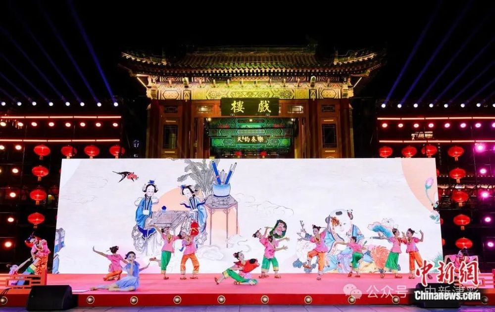 海河沿岸,戏楼台上,杨柳青年画与天津娃娃歌舞相得益彰。天津市委网信办供图